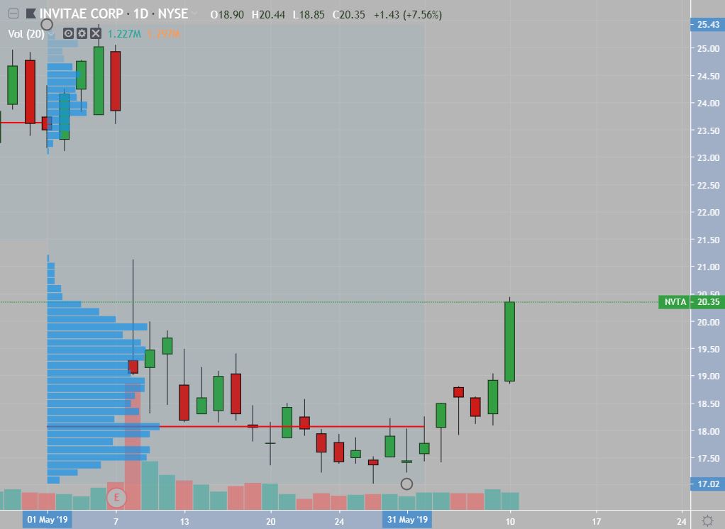 Put it this way - there was such a big surge of volume pushing it to 24 that the point of control for Q2 literally shifted up from $19.30 to $24.02. Part of the reason for the surge was because there was a low volume node where little previous activity took place. Many times those can serve has staunch resistance. The other factor I'm sure was that it was basically a 40% move since the bottom of the dip causing natural profit taking. Either way, great sign for future higher prices, as you want more longer termed POC's shifting upward (especially within the overall volume profile) to build more support and "cause" for the next leg. The volume profile confirmed an "AR" after the big dump from Q1 earnings. Btw, I read comments months ago that for a long time now NVTA has been spelling out the fact that Q1 has always been an expected underperformer (Q3 and Q4 are their big dawg reports) so it was just a short term overreaction. This move up to 24 is proof of that. Should've held my shares in the 18's. That would've been the PRO move and reduced my risk greatly, but ya I'm 90% sure I'm buying back .... obviously prefer to on a dip and that $22 area (the low volume node) would be ripe for it as it should be support now. "Patience" will forever be the final trading frontier for me.