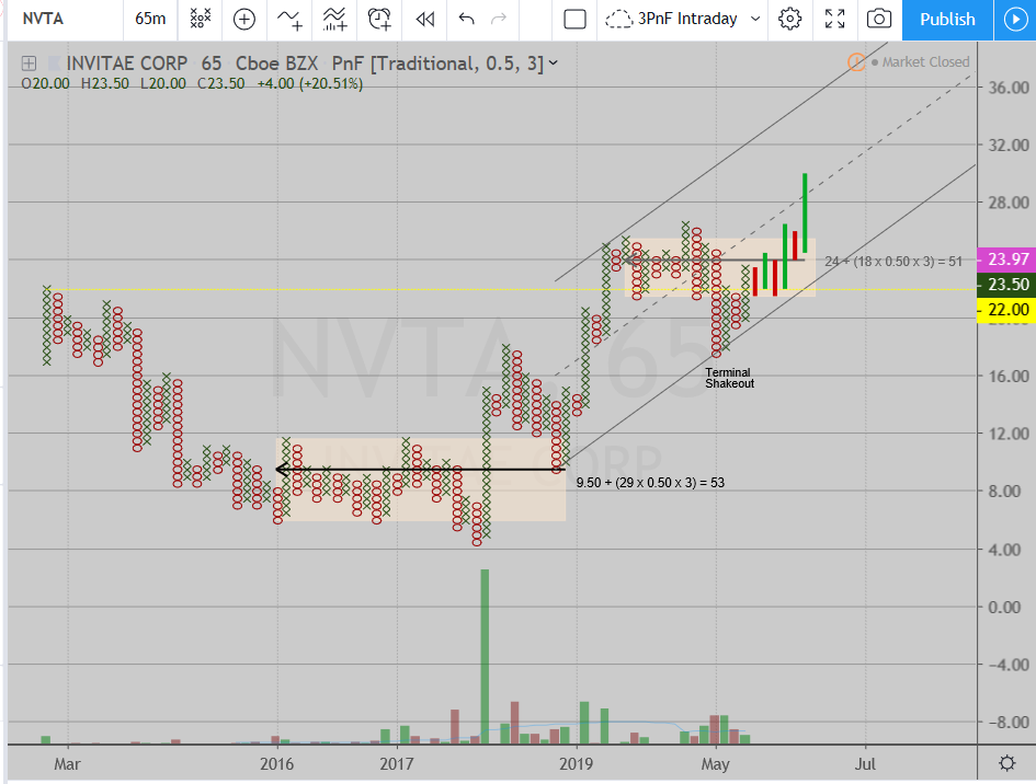 ......... #REGRET $NVTA is filling the gap. Very strong response after the Q1 earnings miss. I need to just get long and stay long for the PnF target we had in the low 50's. Starting to notice that short term panic selloff's offer a great dip opportunity to buy if it's still trending up towards our long term PnF targets