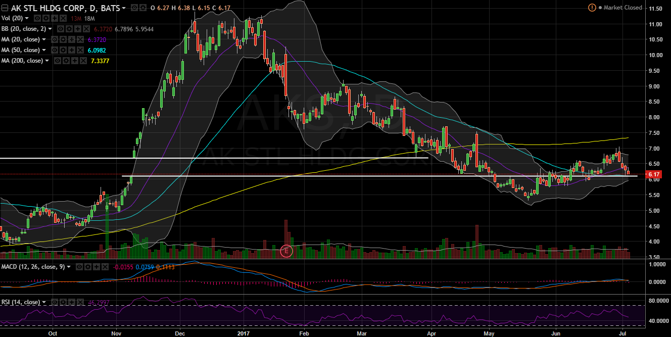 Got a little help from Trump on this one, currently up about 7%. Steel companies on the move since yesterday afternoon when Trump said he was considering steel quotas/tariffs. Trump says he is considering quotas, tariffs on Chinese steel dumping Source: http://www.reuters.com/article/us-france-usa-russia-idUSKBN19Y2L4?il=0