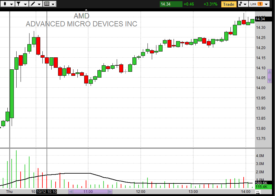 I don't see AMD going back to support, but if it does the upward trend support on the channel would be around 12.85. I'm still good.