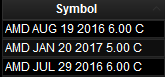 AMD to Report Fiscal Second Quarter Results on July 21, 2016 SUNNYVALE, CA--(Marketwired - Jul 7, 2016) - AMD (NASDAQ: AMD) today announced that it will webcast its earnings conference call on Thursday, July 21, 2016 at 5 p.m. EDT / 2 p.m. PDT to discuss the results of its fiscal second quarter ended June 25, 2016. All interested parties will have the opportunity to listen to the real-time audio webcast of the teleconference over the internet through AMD's website at ir.amd.com. An archive of the webcast will be available for approximately one year after the conference call. http://finance.yahoo.com/news/amd-report-fiscal-second-quarter-201500383.html I hold the following calls and got in very early on the on the Jan 2017 calls