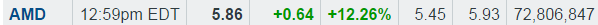 AMD making another run. If it breaks 5.85 that is being stubborn to take out it could near $6 Broke 5.85 as I was typing