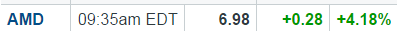 Since the June 20th close AMD has went from 5.40 to 6.70 close a gain of 24% setting a new 52 week high @6.95. It blew through my short term price target of 6.30 and 5 cents short of my mid-term price target of $7 With that I took profits on 10% of my shares and sold all of my 07-29-16 $6 calls and half of my 08-19-16 $6 calls which I have a bigger position in. I still hold all my JAN 20 2017 $5.50 and $7 calls that have literally went through the roof. By the way for those that remember or want to go through this thread the 10% sell of my shares was from my $4 calls that I did not want to sell at the time. FIFO might not agree but that was the plan from expiration. \