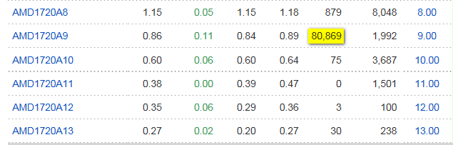 Trying to understand calls here so just so I'm clear. The Jan $9 calls is a contract giving you the right to buy AMD at $9 per share up until January? And the cost is 0.86 per contract? And so that would then mean you are expecting it to go higher than 9 by January?