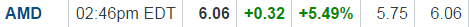 Got in on AMD yesterday at $5.72 and added more today at $6.02. plan to add one more slice on the next dip
