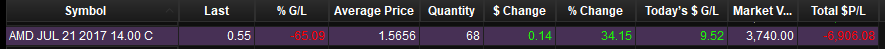 Oh yeah! It's looking real good right now. I'm going to keep going long, I think - there is so much going for AMD it's crazy. It is just a little scary after all the monster drops. I learned my lesson and will sell temporarily before any big announcements or releases. (Earnings, Ryzen realease day, Analyst day) Edit: Actually at the end of July, RX Vega (the gaming graphics cards, as opposed to the professional line) will release and then on July 31st is earnings... I don't know what the hell I'll do at that point. The one time I do sell after the rumor and before the news the stock will soar, right? Haha.