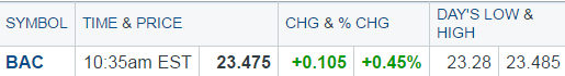 Hello 23 (again). Like a lot of stocks they may have moved to far too fast in the last two sessions. BAC came with in 1 cent of the 52 week high this morning.