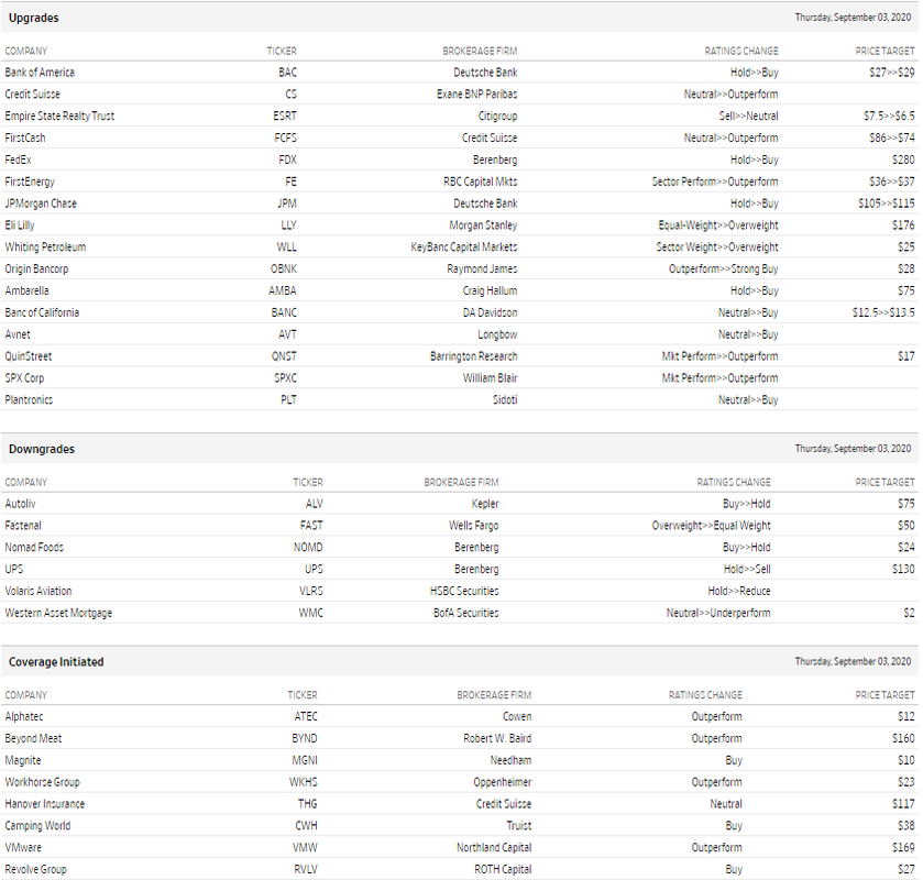 Thursday 9.10.20 Daily Analyst Upgrades/Downgrades/Price Target Changes-
