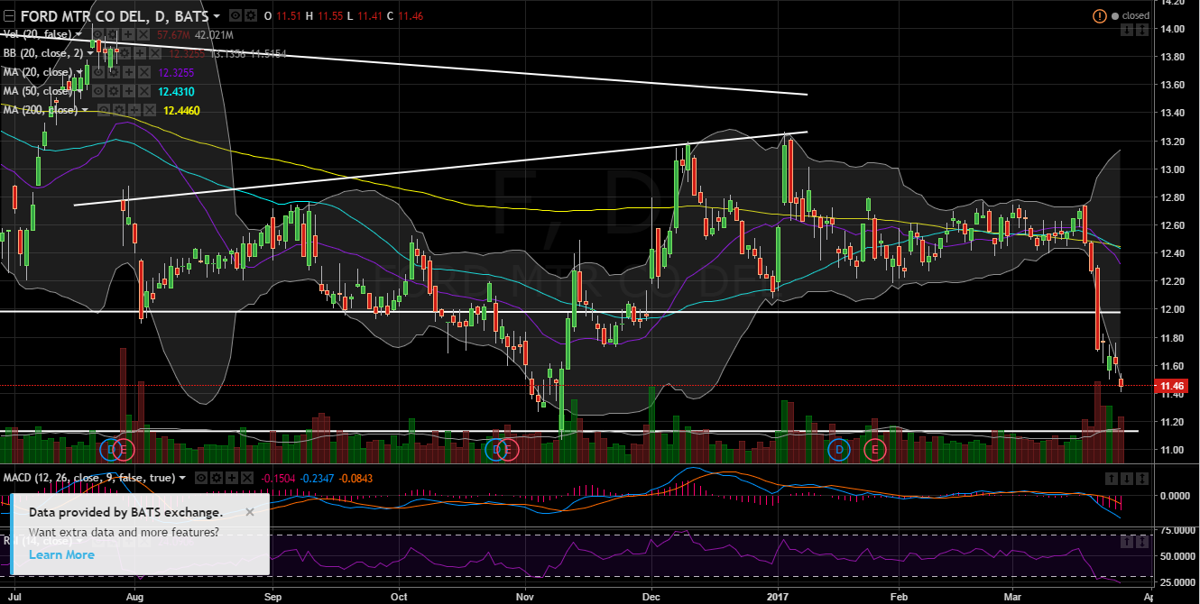 Looks like Ford may finally retest that August 24th, 2015 spike-low that affected the entire market. Monthly sticks: