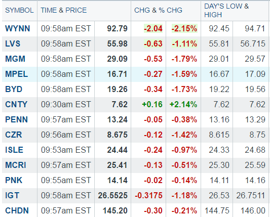 I was very surprised myself as Vegas and Macau are jumping. It could be the whiplash from the Trump/China trade war scenario.I do not see any other negatives.
