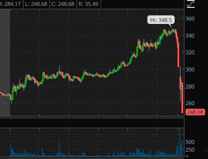 Gonna be interesting to see if this wick that went over $300 today can hold. I'd imagine lots of sell limit orders were triggered