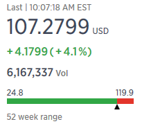 Strong bull spam here tonight, think we see a flat open and drift lower tomorrow, gap over 105 and hold I'm out of shorts.