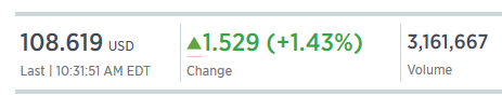 Nice little grind we got going on here since $95. Back above the 50MA for the first time since mid February.