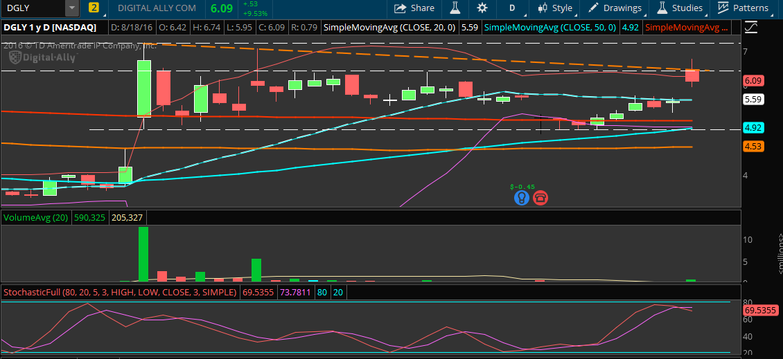 Just thinking out loud here.. IMO it gave the signals with that buy volume back on 7/8 and 7/18 that it was in accumulation. Today it gapped up outside the BB's and it's overbought so it will need a rest. Wait for it to pullback to a good risk/reward setup for a break out around 6.34. For a swing the ma(200) would be hot if you could get it, but it will probably consolidate around here before breaking out.