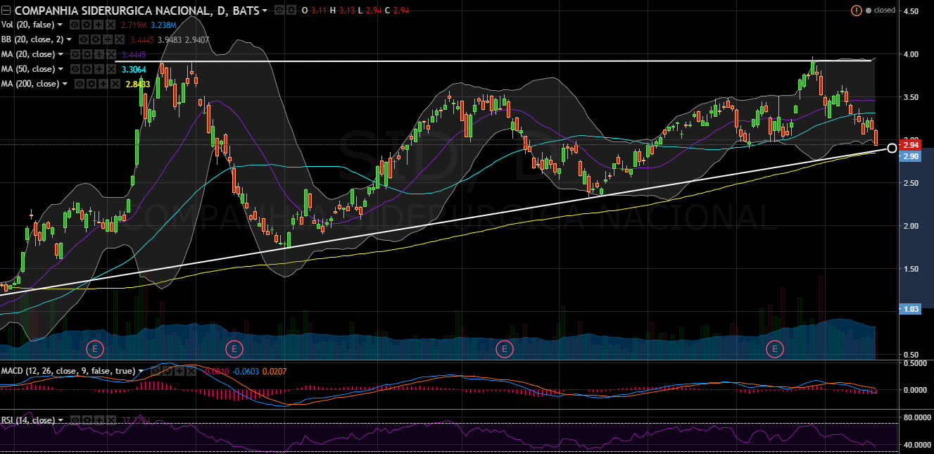Just closed my position in SID for 29.21% gain. Didn't quite make it to my target, but it's JUST ABOUT there. I didn't want to get greedy and sit on this for another day than I needed to. It's approaching resistance right now at around $3.90, and sitting at the upper BB. Better time than ever to sell in what I think will be a volatile 2nd half of the month in an already volatile Brazilian stock.