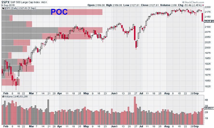 I've been using volume profile analysis for quite some time now and I've never see such a quick shift of the POC (that I can remember) on an indices like that. A normal trending market would build a POC, shake out weak longs and suck in misinformed shorts, then propel to more new highs. As you can see this did not. The POC or "auction" quickly re-evaluated on that shift ...... then promptly rejected.