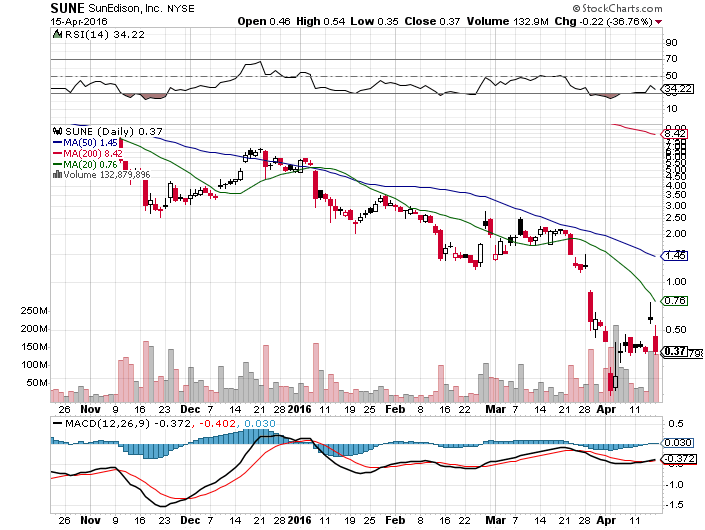 SunEdison Enters Bankruptcy Loan Negotiations With Its Lenders http://www.bloomberg.com/news/artic...tiations-with-its-lenders?cmpid=yhoo.headline SunEdison Inc., the world’s biggest clean-power developer, is talking with creditors about restructuring financing, though it said the discussions are ongoing and there’s "no assurance" they will result in a deal. The company and its first- and second-lien lenders entered into a confidentiality pact on March 17 for the financing transactions in a potential bankruptcy filing, the company disclosed in a regulatory filing to the Securities and Exchange Commission, which included a 34-page slide presentation to creditors. The company will require a $310 million loan to fund it through a potential bankruptcy process, according to estimates in the March 17 presentation. The company projected using a total of $779 million in cash for the first quarter. It said it expects to reduce headcount by 50 percent from their October 2015 base with additional $150 million of non-labor savings. Restructuring financing or debtor-in-possession loans, also known as DIP loans, give lenders control over the restructuring process. The company’s publicly traded yieldco units TerraForm Global Inc. and TerraForm Power Inc. have both previously warned that there’s “substantial risk SunEdison will soon seek bankruptcy protection.” The company hired Skadden, Arps, Slate, Meagher & Flom as legal adviser and Houlihan Lokey as financial adviser for a potential restructuring. The negotiations come as SunEdison faces default on at least $1.4 billion in loans and credit facilities, and after it failed to make a $2.6 million interest payment on its 2 percent convertible bonds maturing in 2018. The company is teetering on the edge of bankruptcy and analysts said the disclosure may please creditors. On Thursday, SunEdison said an independent counsel hired by its board identified “wrongdoing” by a former non-executive employee and an “overly optimistic” culture fostered by management. The company said counsel didn’t identify material misstatements in its financial statements nor did it find substantial evidence of fraud or willful misconduct by management, according to a filing. SunEdison spent much of 2014 and 2015 on a multi-billion-dollar buying binge, snapping up wind and solar projects and developers on six continents. It also racked up almost $11.7 billion in debt, as of Sept. 30.
