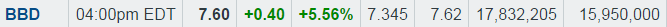 btw I put BBD on list .. IMO if it hold +/- 7.55 could see $8+ but BBD been new one to me I need further DD I like good cents potential