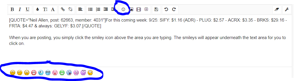 when you post a message there is a row above with a little smile icon to the right - click it & row will appear below