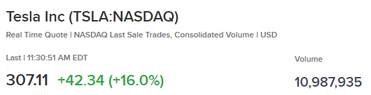 Glad that I took advantage of drop last Friday and added two more contracts: News: Tesla made a record 80,000 vehicles last quarter, report says https://www.cnbc.com/2018/10/01/tesla-made-a-record-80000-vehicles-last-quarter-report-says.html Tesla’s stock soars after surprise SEC settlement, hint of profitability from Musk https://www.marketwatch.com/story/t...nt-hint-of-profitability-from-musk-2018-10-01