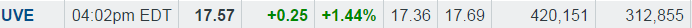 UVE is back to pre-Brexit prices. Before the fallout I was looking for a break of $20 and now that is my near term target again. As we are due a market pullback not sure about getting it for under 19 but you never know. If your read further in the thread you will see my mid and long term target prices. Strong volume