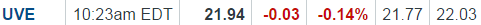 UVE only posted a 3 cent gain but it has a trading pattern I have seen many times over. It will drop, right out the gate only to gradually creep back up and go positive. Waiting on 22 to be tested again.